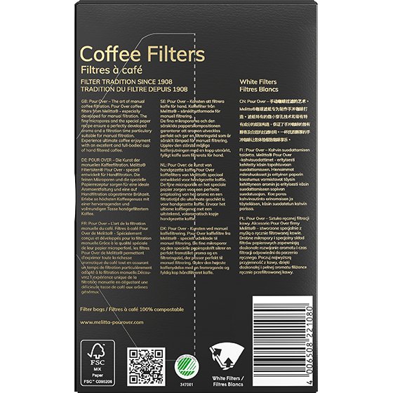 The Pour Over coffee filters are, of course, bleached exclusively using oxygen. This means that no aftertaste is formed during filtration. The micro-fine pores ensure that the aromatic substances flow into your coffee better. Also, we decided on the single seam for an all-round perfect fit – that is, of course, sturdy and tear-resistant.